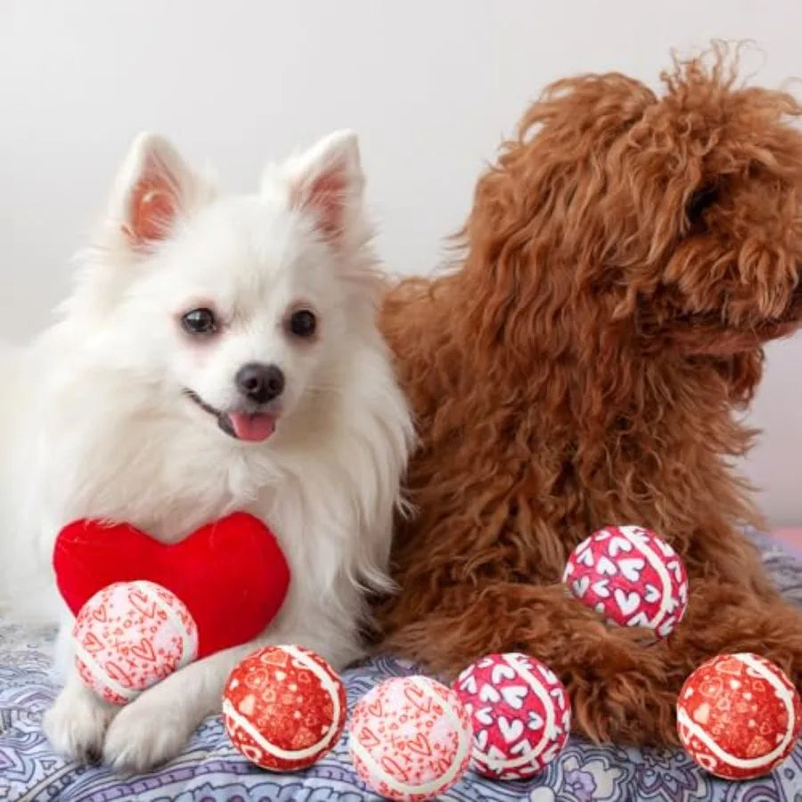 Heart Design Dog Tennis Balls Chew Toys For Dogs Durable