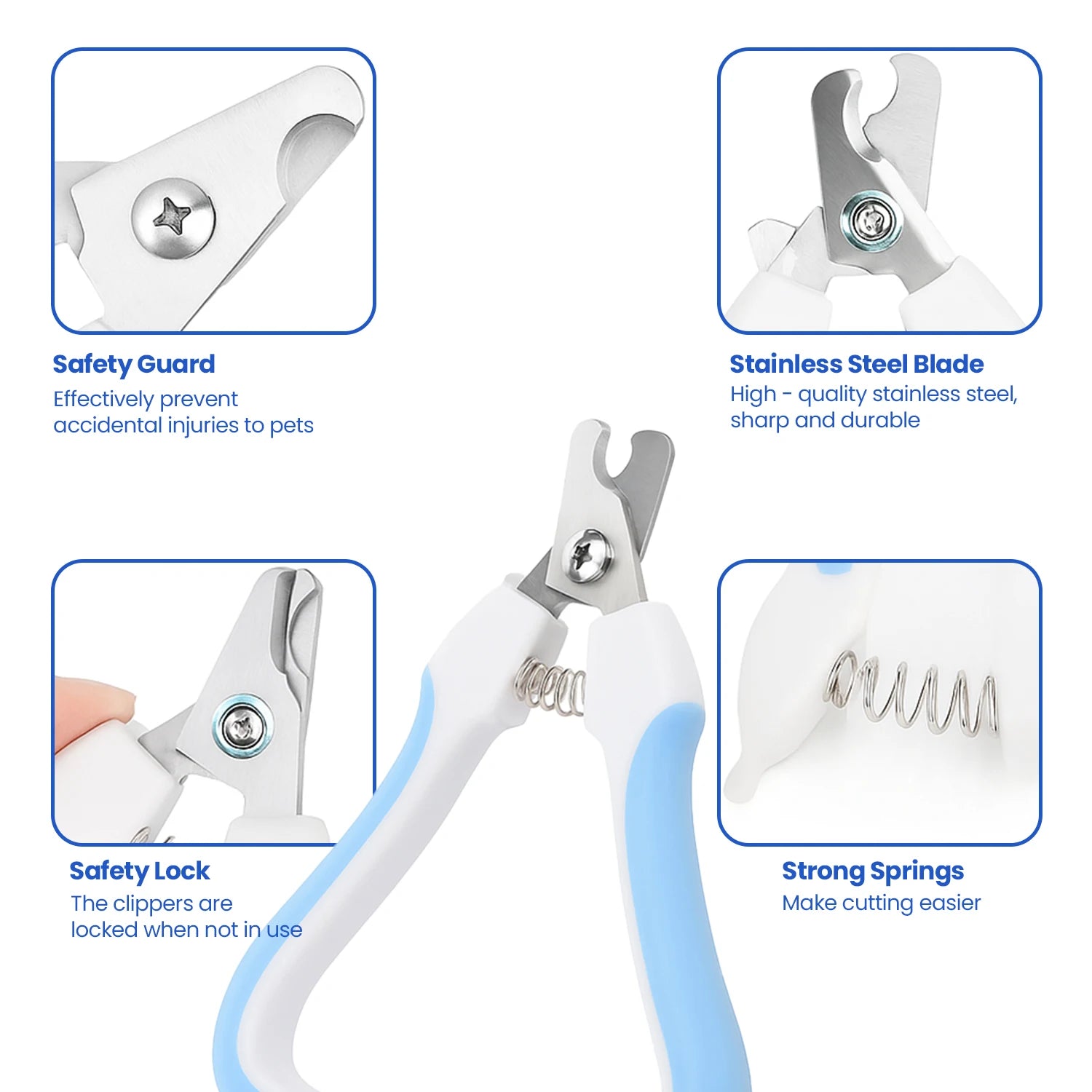 - Nail Clippers and File: 3.5mm stainless steel blades stay sharp for years, with an adjustable guard and safety lock to prevent over-cutting; the built-in file smooths your pet's nails to protect furniture.