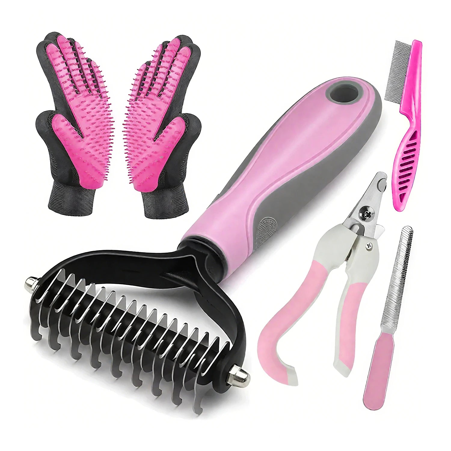 Groom at home with confidence using this 5-in-1 Pet Nail Clipper Set, a complete toolkit for detangling, trimming, and soothing massage.