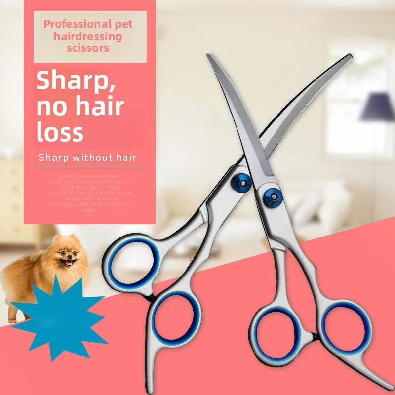 Stainless Steel Grooming Scissors Curved Pet Hair Trimming for Dogs