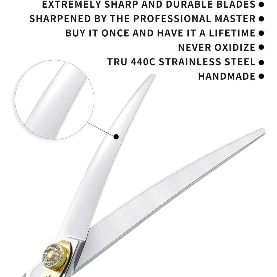 Achieve smooth, precise trims for your pet with this curved dog grooming scissors kit.